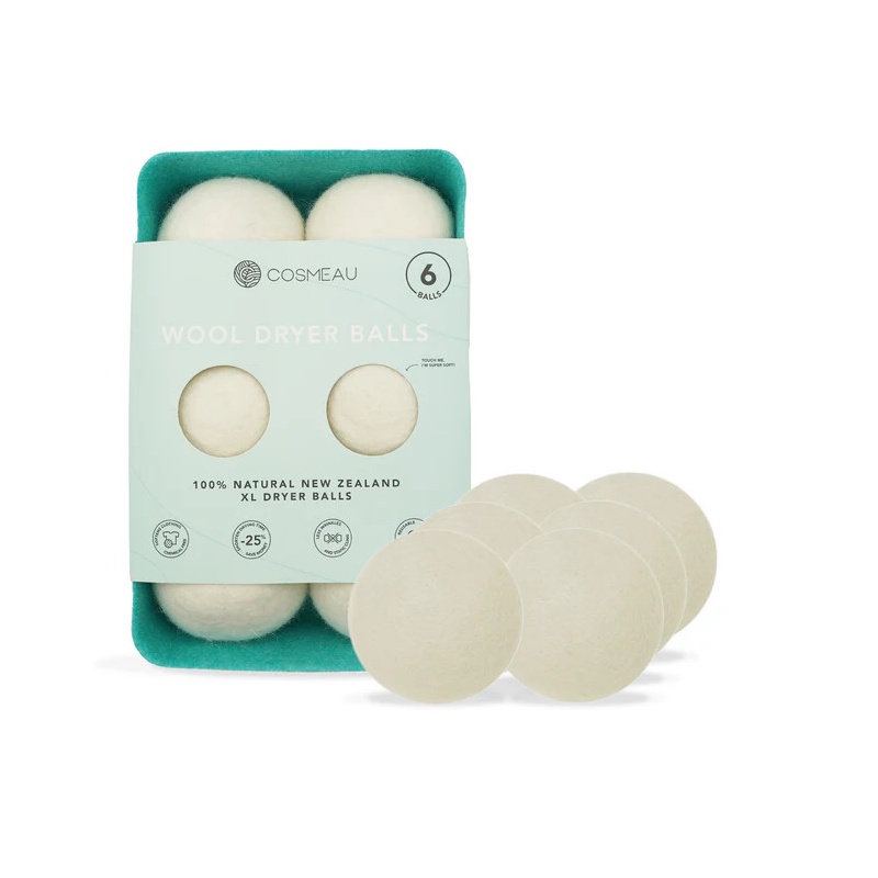 Cosmeau Dryerballs 6 Pieces Including Storage Tray, Cosmeau — шерстяные шарики для сушки белья, 6 шт. с подставкой